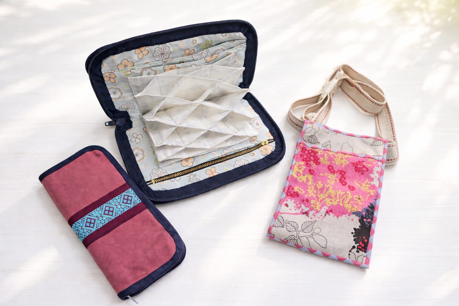 スマホケースや財布・袋物などの手作り小物を各種ご用意しております。