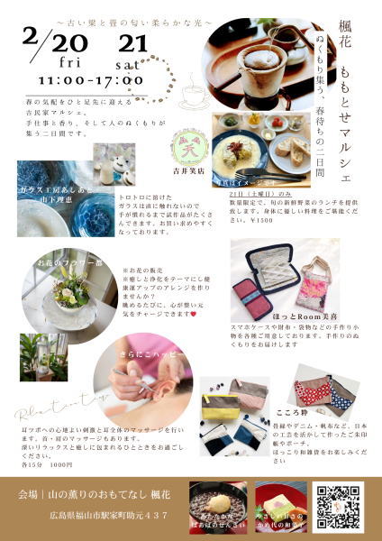 古民家「楓花」にて、春の気配をひと足先に迎えるマルシェをひらきます。